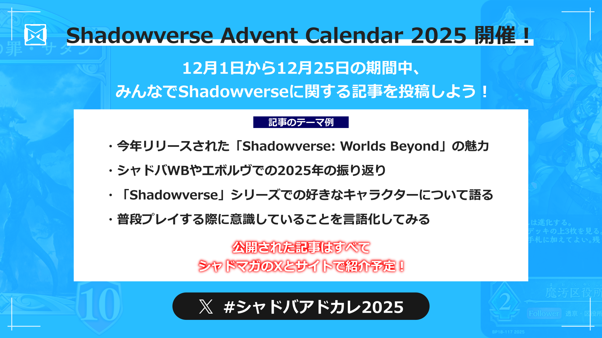 記事を公開する際は是非「#シャドバアドカレ2025」と共にXなどで公開してください。