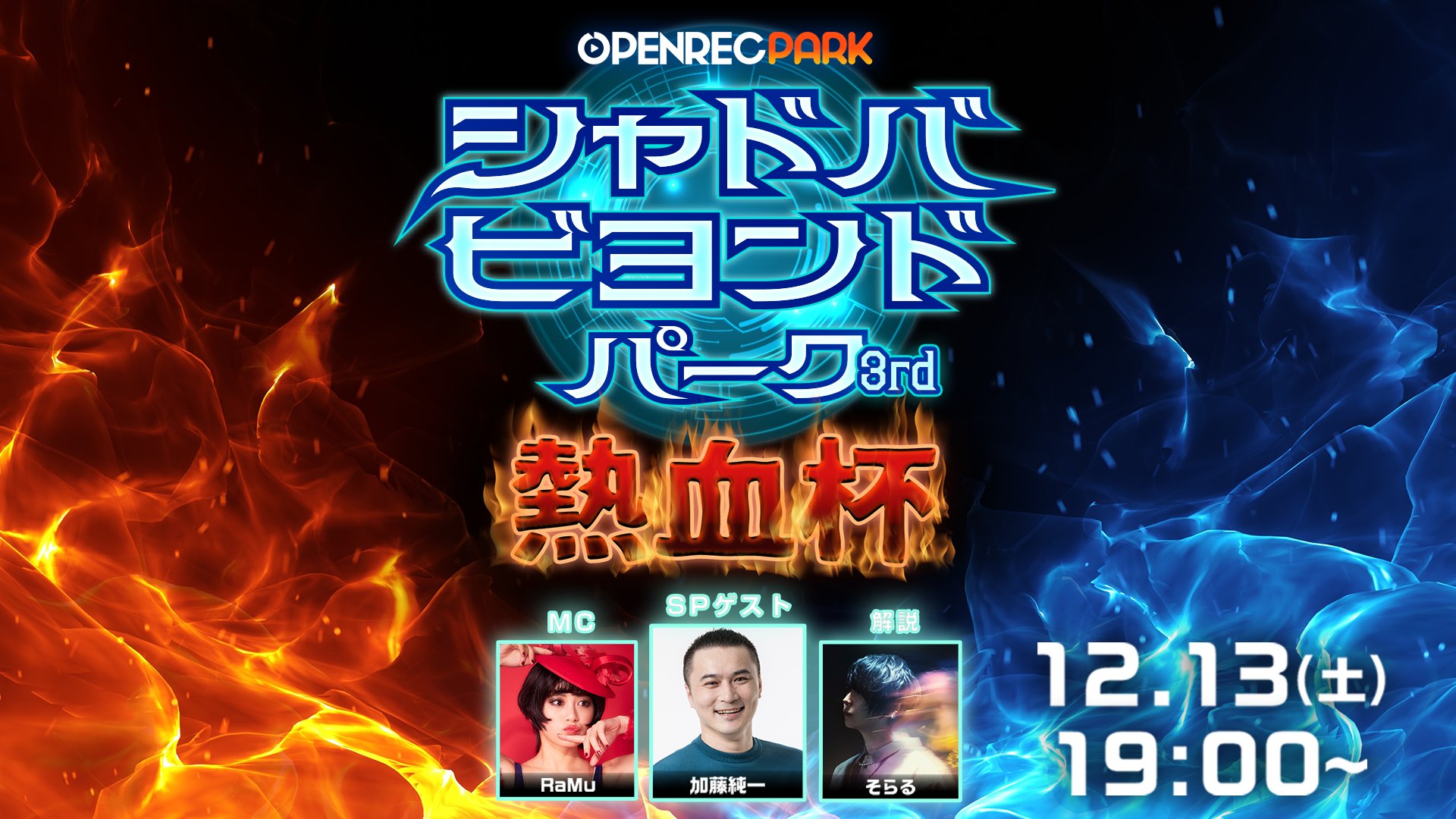 12月13日(土)19:00から人気ストリーマー達によるカジュアルイベント「シャドバビヨンドパーク3rd 熱血杯」が行われることが決定しました。このイベントは配信者と視聴者が一緒になってゲームを遊び尽くす『OPENREC PARK』として行われ、今回は2チームで行われます。