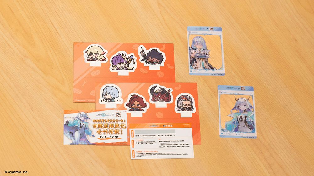 コラボ期間中、対象店舗にてコラボメニューを購入すると「コラボバーチャルアイテムカード」と「キャラクタースタンディ」がプレゼントされる他、シリアルコードを交換することでゲーム内でカードパックチケットを獲得することができます。