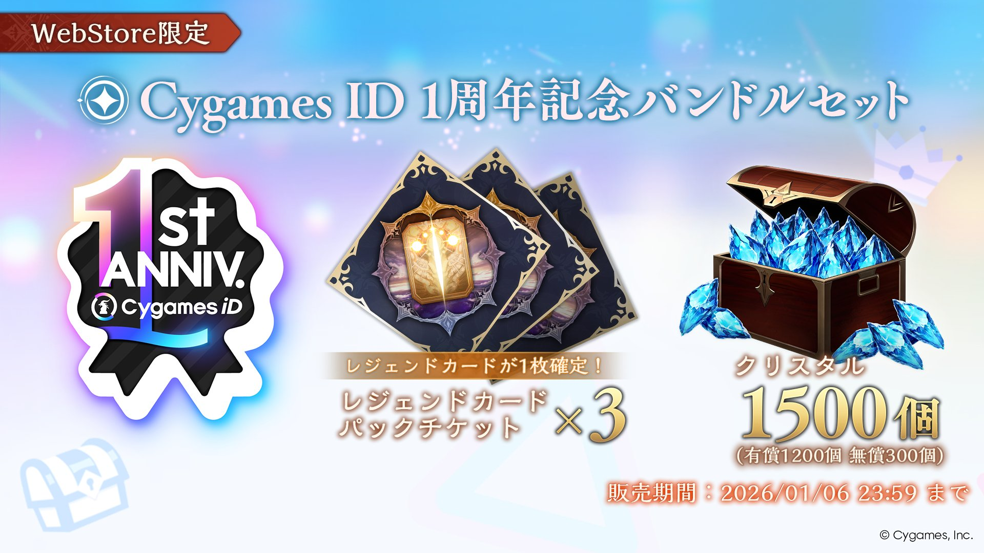 12月20日(土)12:00からCygames IDの1周年を記念したキャンペーンや記念商品が登場しています。