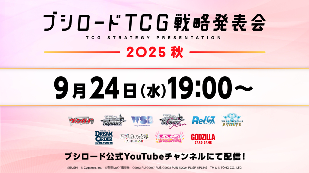 - 【エボルヴ】「ブシロードTCG戦略発表会2025秋」発表内容まとめ9月24日(水)19:00から行われた「ブシロードTCG戦略発表会2025 秋」… 続きを読む: 【エボルヴ】「ブシロードTCG戦略発表会2025秋」発表内容まとめ