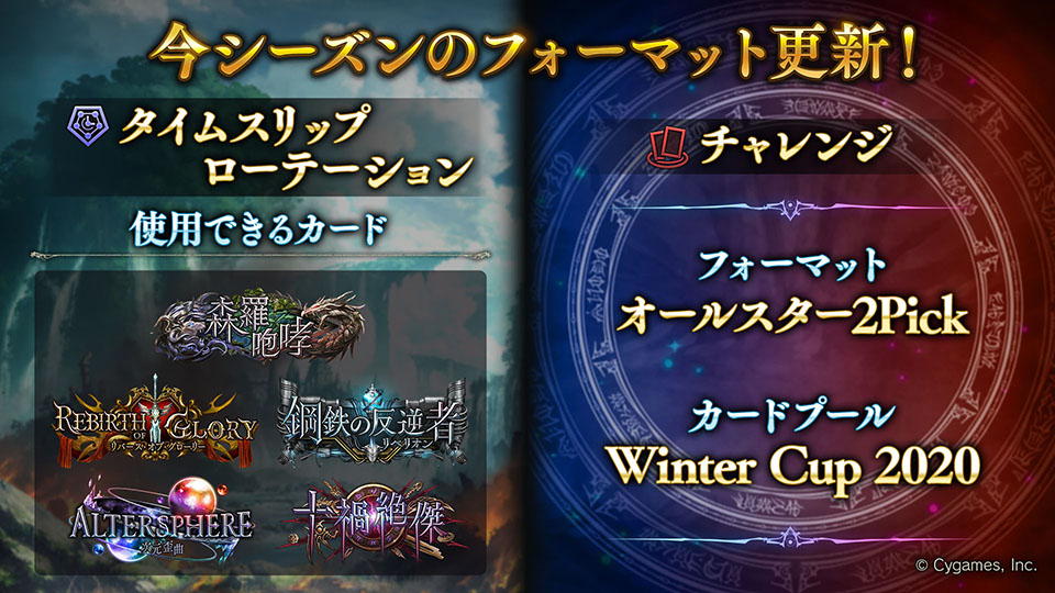 2025年7月~9月のフォーマットはこちらになります。引き続き、タイムスリップローテーションが行われる他、チャレンジでは様々なフォーマットをプレイすることができます。