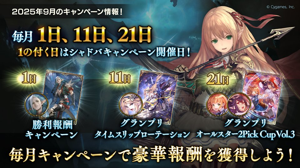 2025年9月に行われるキャンペーンやゲーム内イベントは以下の通りです。