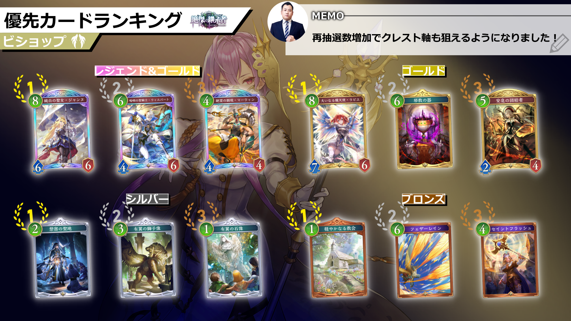 マゼルベインがなくとも再抽選システムが強力であり、特にビショップは構築のクレストビショップに近いデッキを作成することも不可能ではありません。