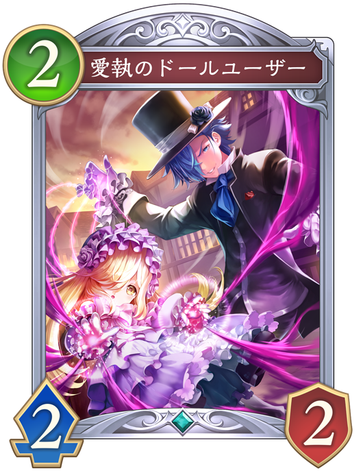 ![]() | 自分のフォロワーが超進化したとき、自分のターンごとに1回、『操り人形』1枚を自分の手札に加える。それは+3/+0する。 |