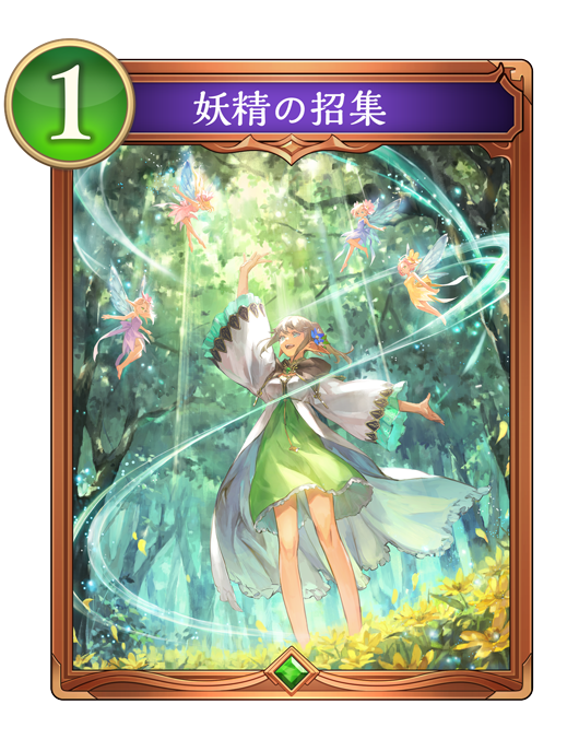![]() | 自分のターン開始時、自分の手札に『妖精の招集』がないなら、『妖精の招集』1枚を自分の手札に加える。 |