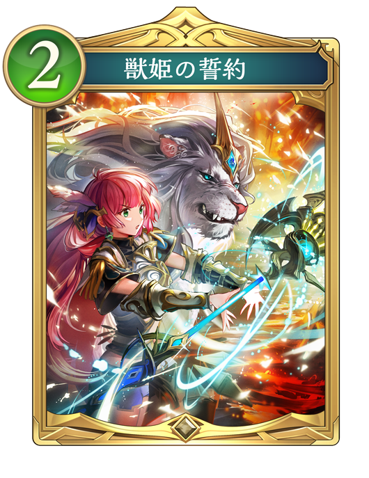 ![]() | 自分のターン開始時、自分の手札に『獣姫の誓約』がないなら、『獣姫の誓約』1枚を自分の手札に加える。 |