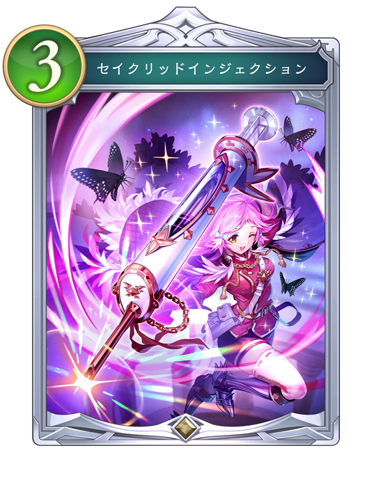 ![]() | 自分のターン開始時、ターン数が1なら、『セイクリッドインジェクション』1枚を自分の場に出す。 |