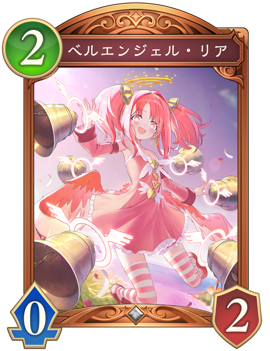 最終更新日: 2025年11月30日 ベルエンジェル・リア 進化前 進化後 カードタイプフォロワーレアリティブロンズクラスニュートラルタイプ-コスト2カードパック第1弾カードパック「伝説の幕開け」能力【守護】 【ラストワード】自分のデッキから1枚を引く。 【進化時】自分のデッキから1枚を引く。声優大関英里イラストレーターねつき